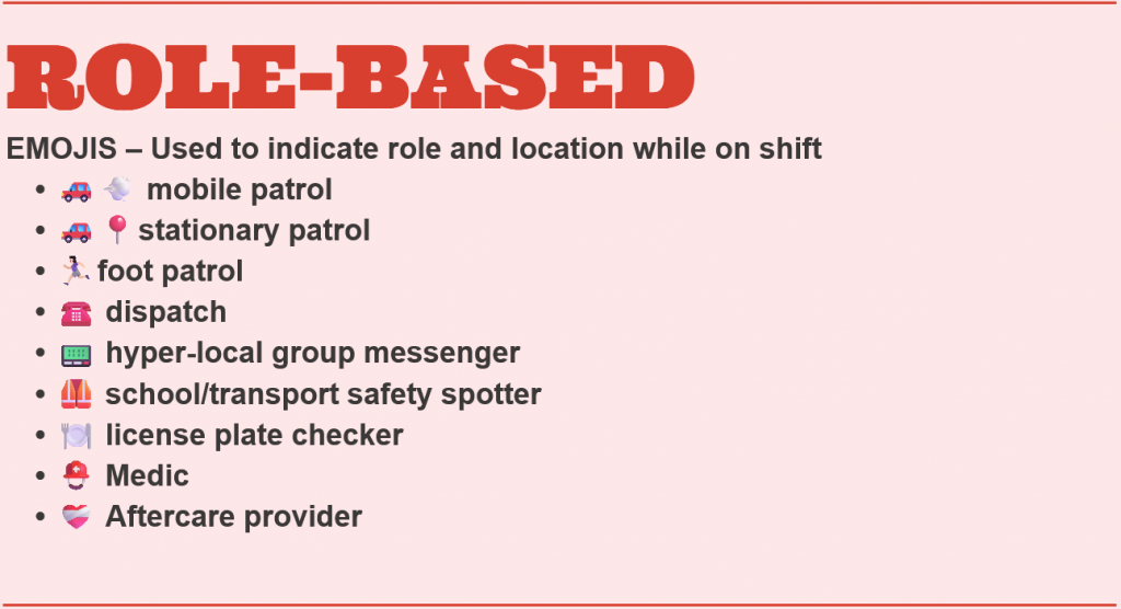 The dispatch system proved highly effective, so it spread throughout the neighborhood groups as well. Dispatchers began organizing amongst themselves to schedule shifts, train up new dispatchers, and export the system to new areas. Dispatchers would identify themselves using a phone emoji (☎️) in their signal name and add a green dot (🟢) or an X emoji (❌) when they were on-shift, which led to an ingenious emoji code for quickly communicating one’s role in the wider network.